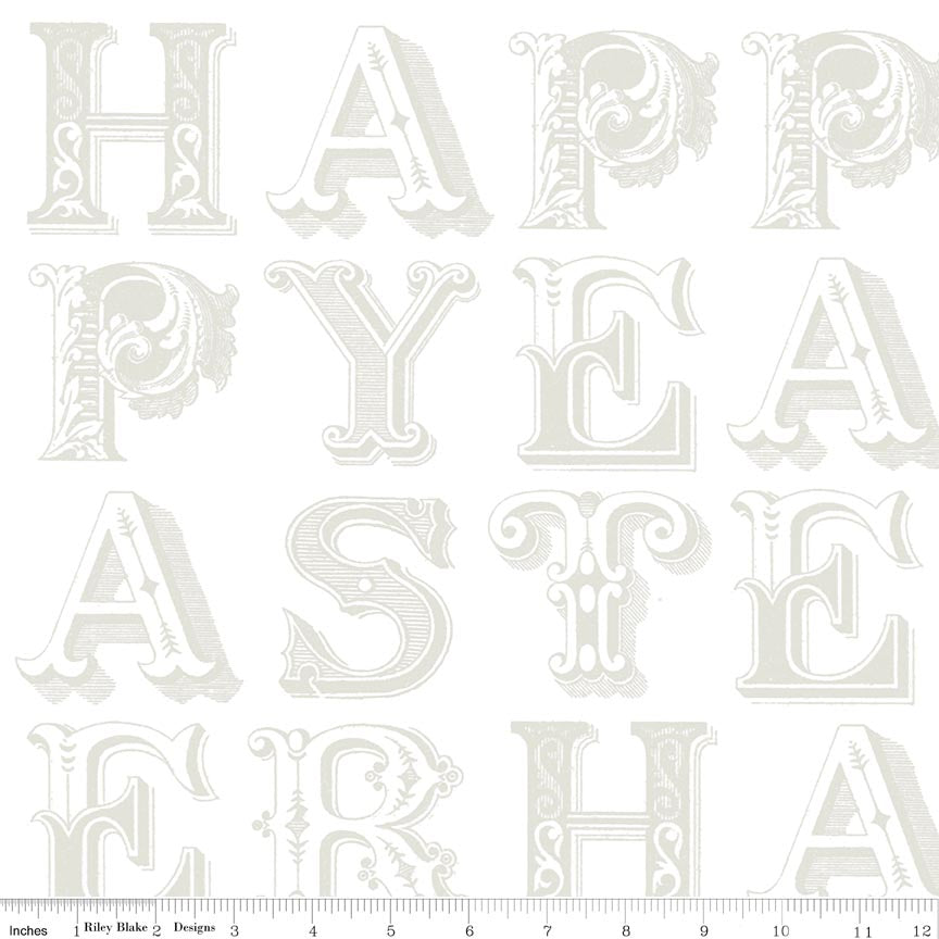Egg Hunt by J. Wecker Frisch of Great Joy Studio for Riley Blake Designs is great for quilting, apparel and home decor. This tone-on-tone text print features the phrase, "Happy Easter."