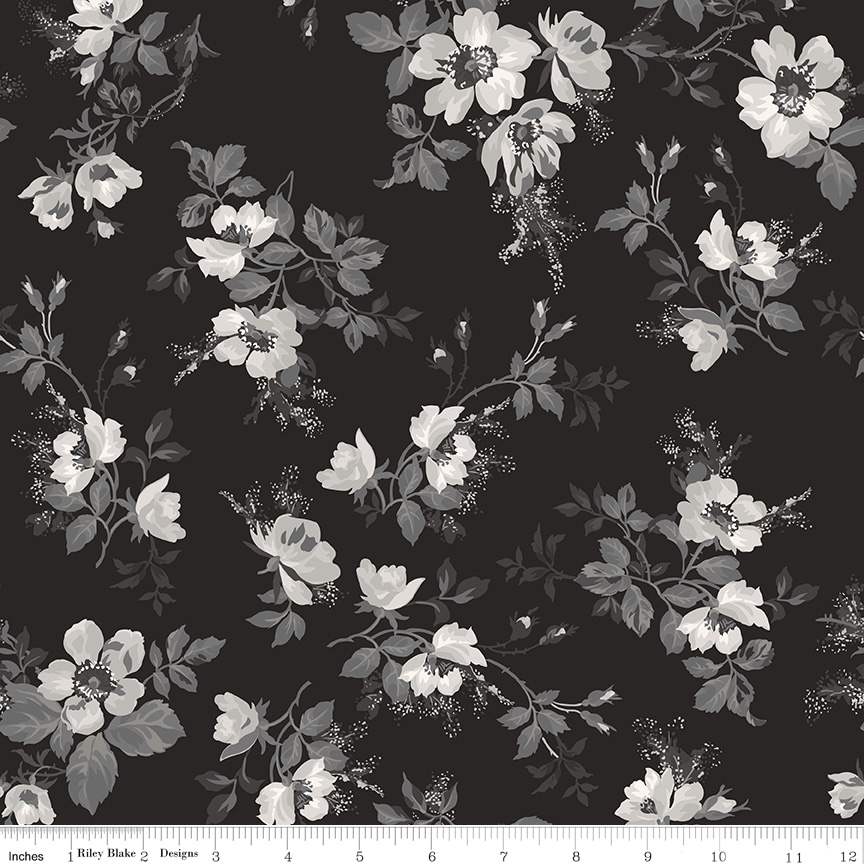 Ink & Ivory by the RBD Designers for Riley Blake Designs is great for quilting, apparel and home decor. This print features clusters of flowers and leaves.