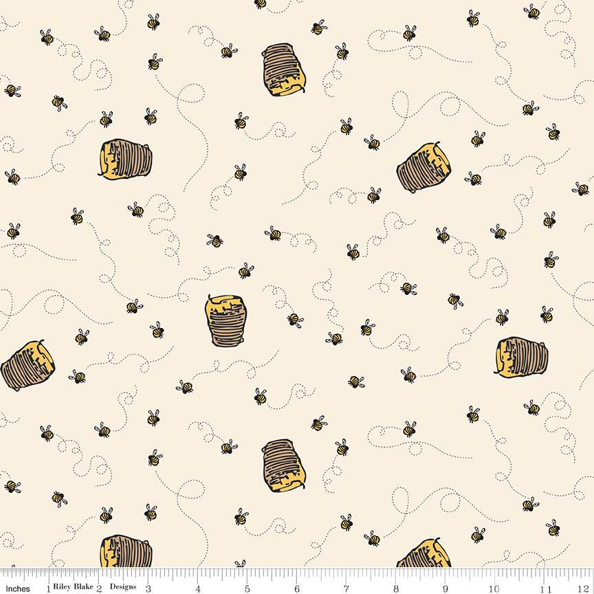 Winnie the Pooh by Echo Park Paper Co. for Riley Blake Designs is great for quilting, apparel and home decor. This print features pots of honey and bumblebees.