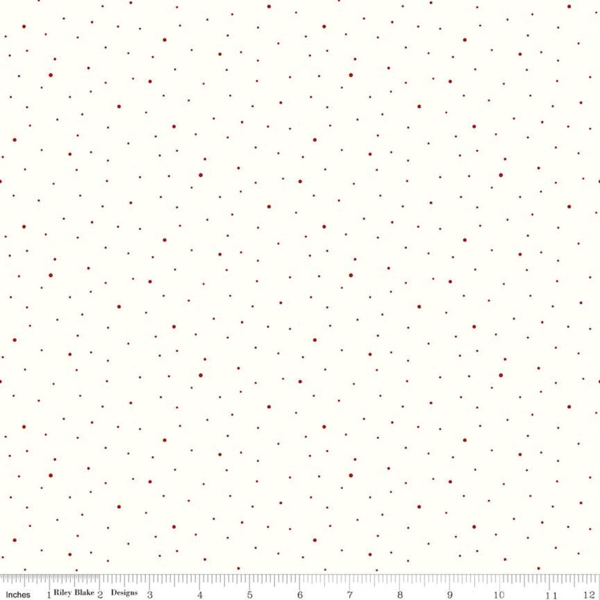 Dapple Dot collection by the RBD Designers for Riley Blake Designs. Scattered red dots on a white background