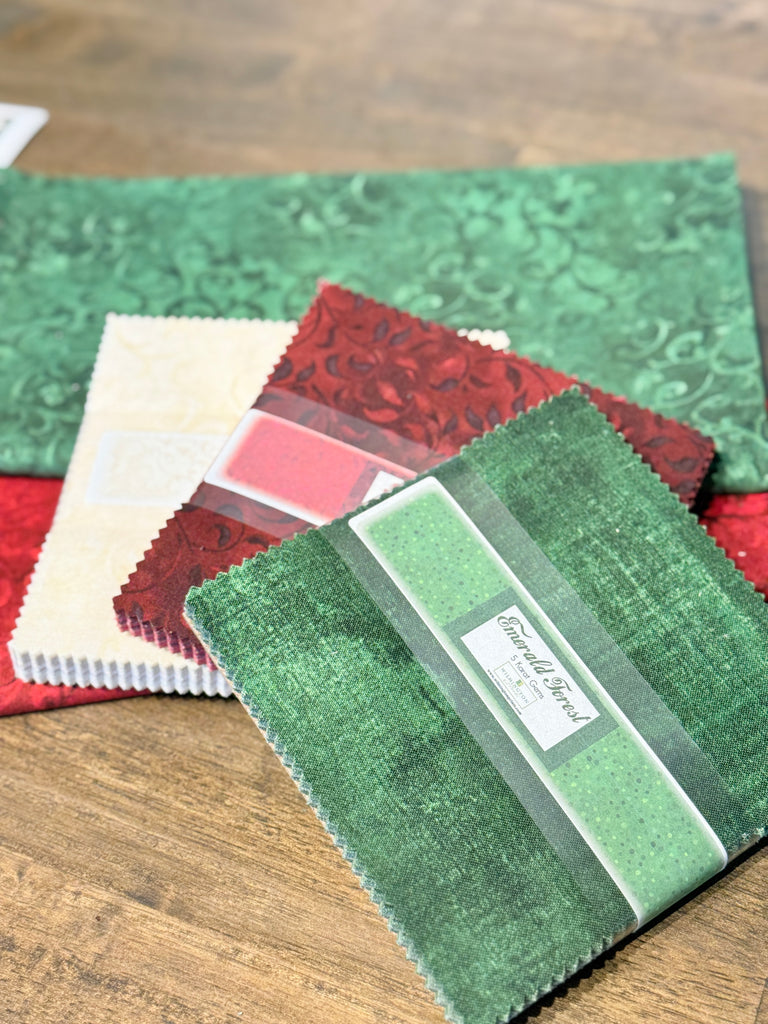 Precut fabrics (three 5 Karat Gems packs) for the tree skirt top.