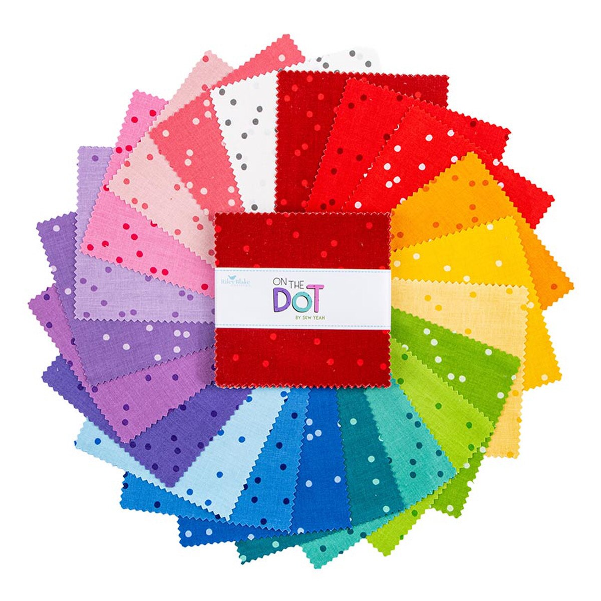 This 5" Stacker precut bundle includes 42 pieces from the On the Dot collection by Sew Yeah Quilting for Riley Blake Designs. Each print will be included 2 times in the bundle.