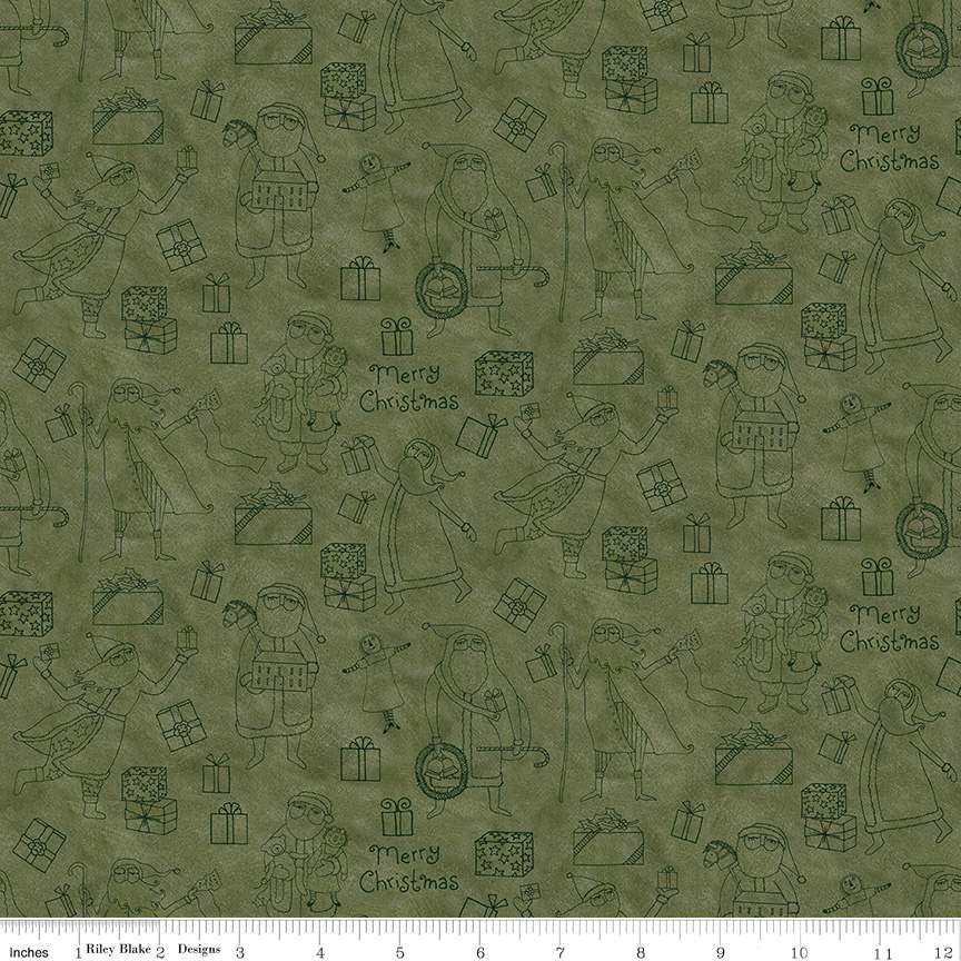 Naughty or Nice by Teresa Kogut for Riley Blake Designs is great for quilting, apparel and home decor. This print features outlined folk art Santas, gifts, toys, and more.