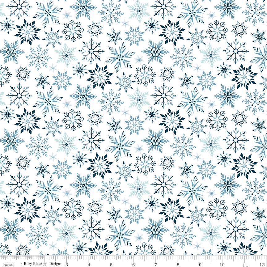 This double napped flannel by Dani Mogstad for Riley Blake Designs is great for apparel, blankets, quilts and quilt backs. This print features assorted snowflakes.