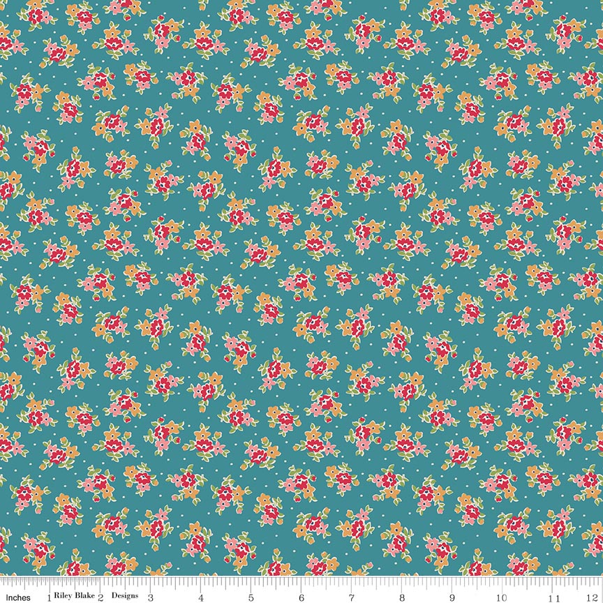 Farmer's Daughter by Lori Holt of Bee in my Bonnet for Riley Blake Designs is great for quilting, apparel and home decor. This print features scattered bouquets and pin dots.