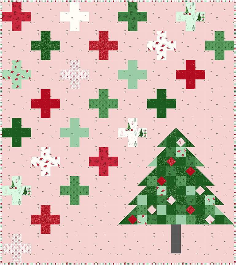 The Swiss Christmas Quilt by Amanda Niederhauser of Jedi Craft Girl features cross blocks and a Christmas tree. Finished size is 72" x 81".