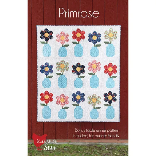 Primrose includes instructions for a Throw size 57" x 66 1/2" quilt, as well as a 23 1/2" x 57" Table Runner. Full color booklet and diagrams help break down each step.