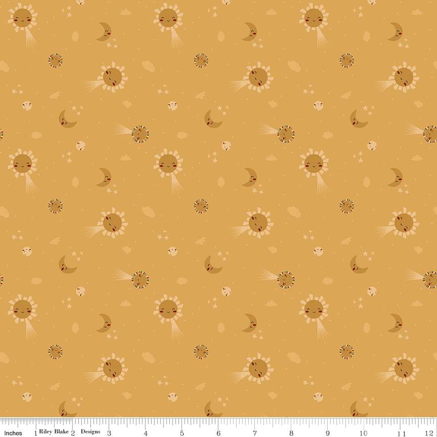 Created with Love by Jennifer Long of Sew A Story for Riley Blake Designs is great for quilting, apparel and home decor. This print features stars, moons, and suns.