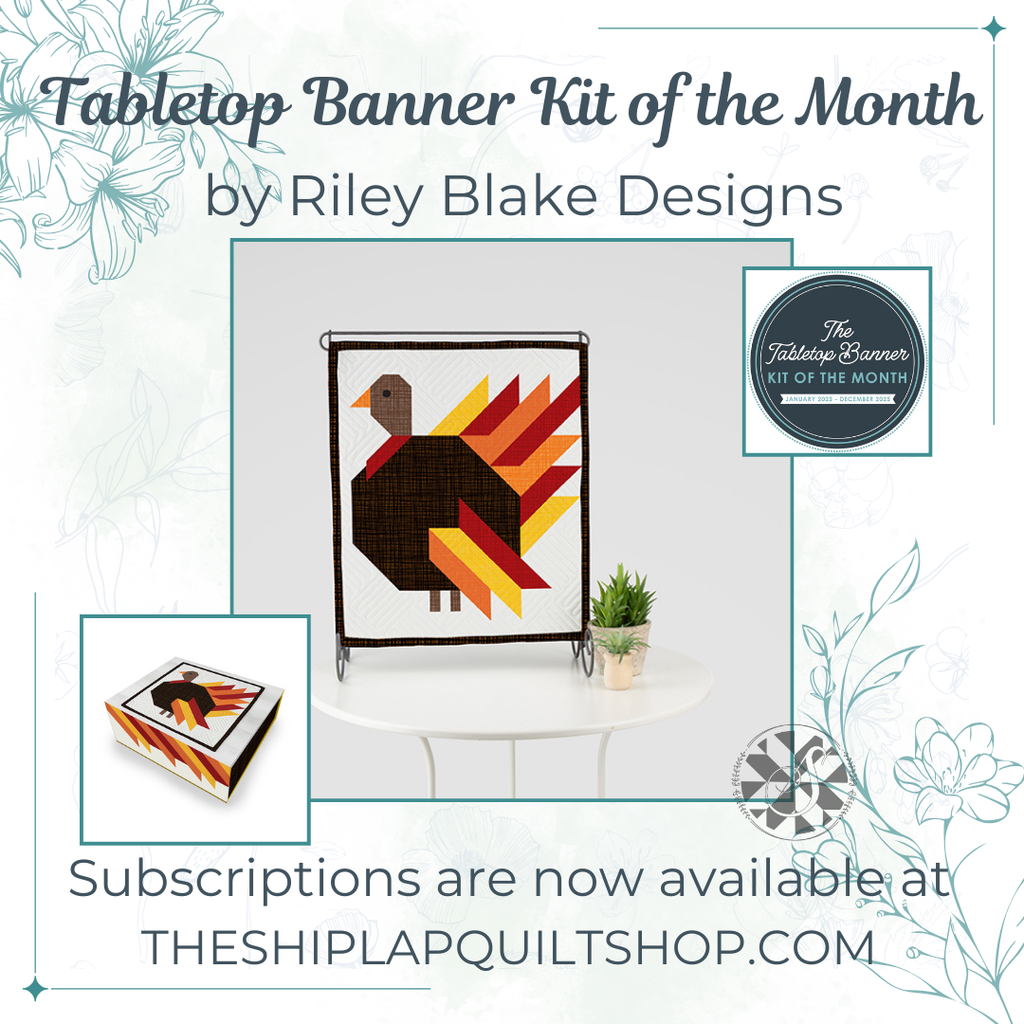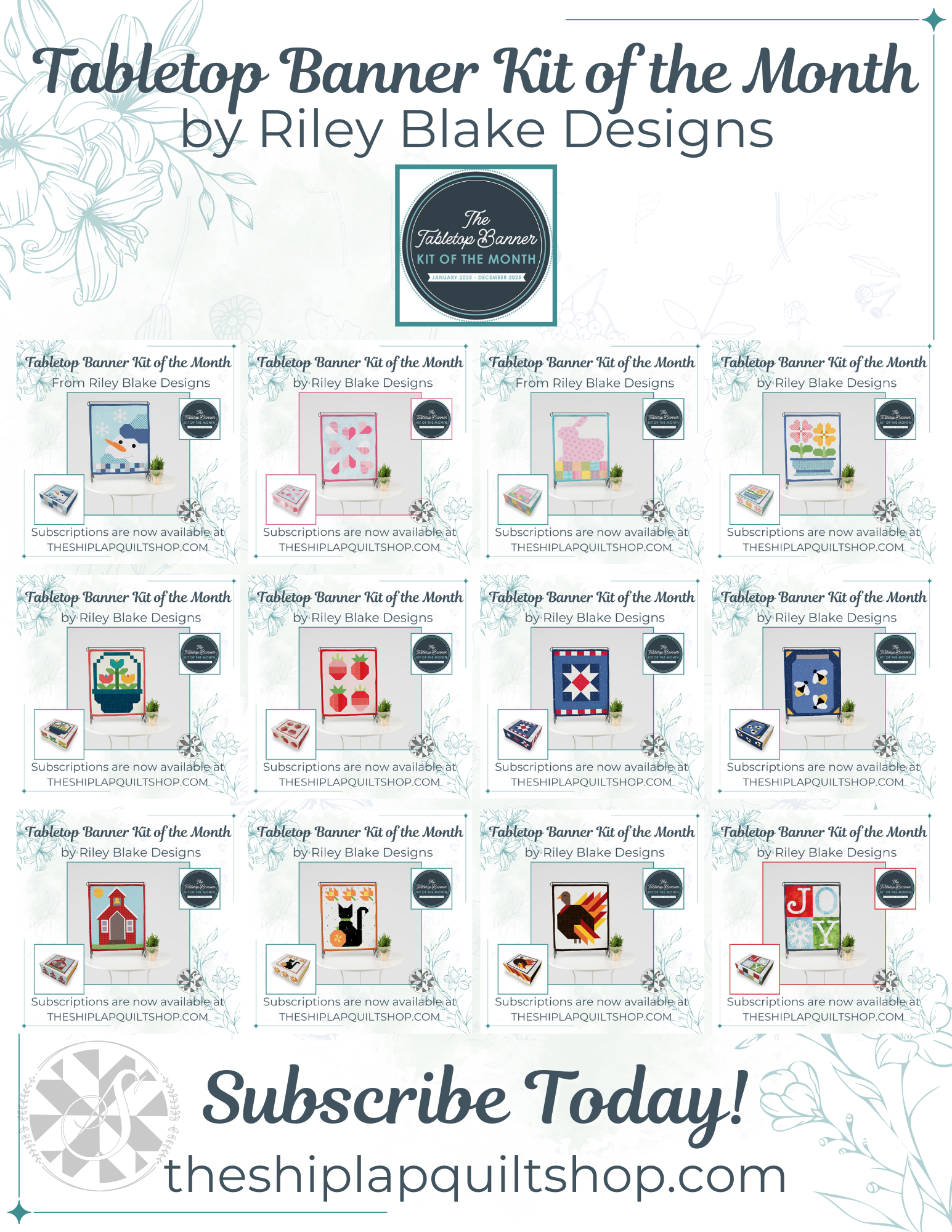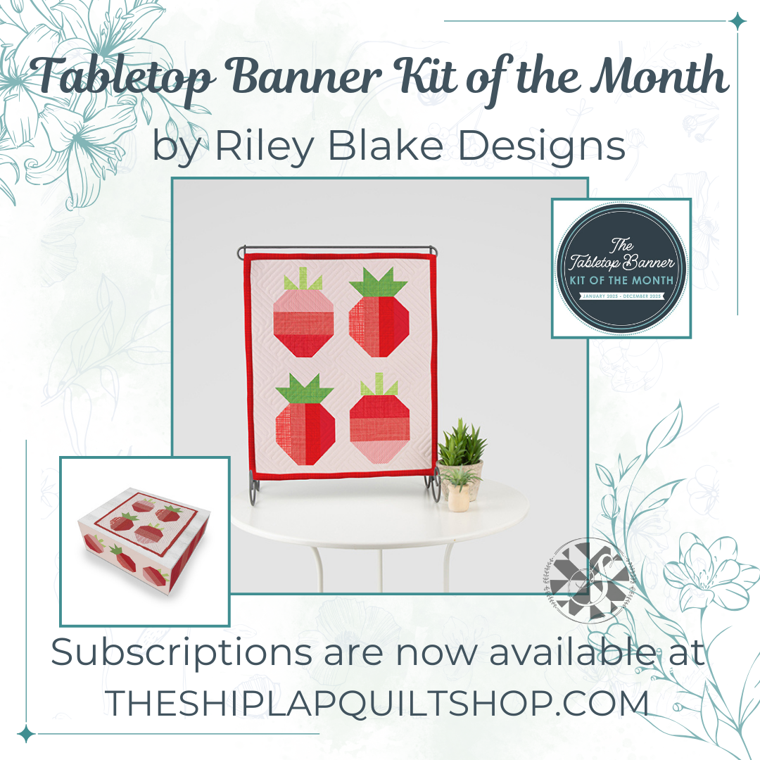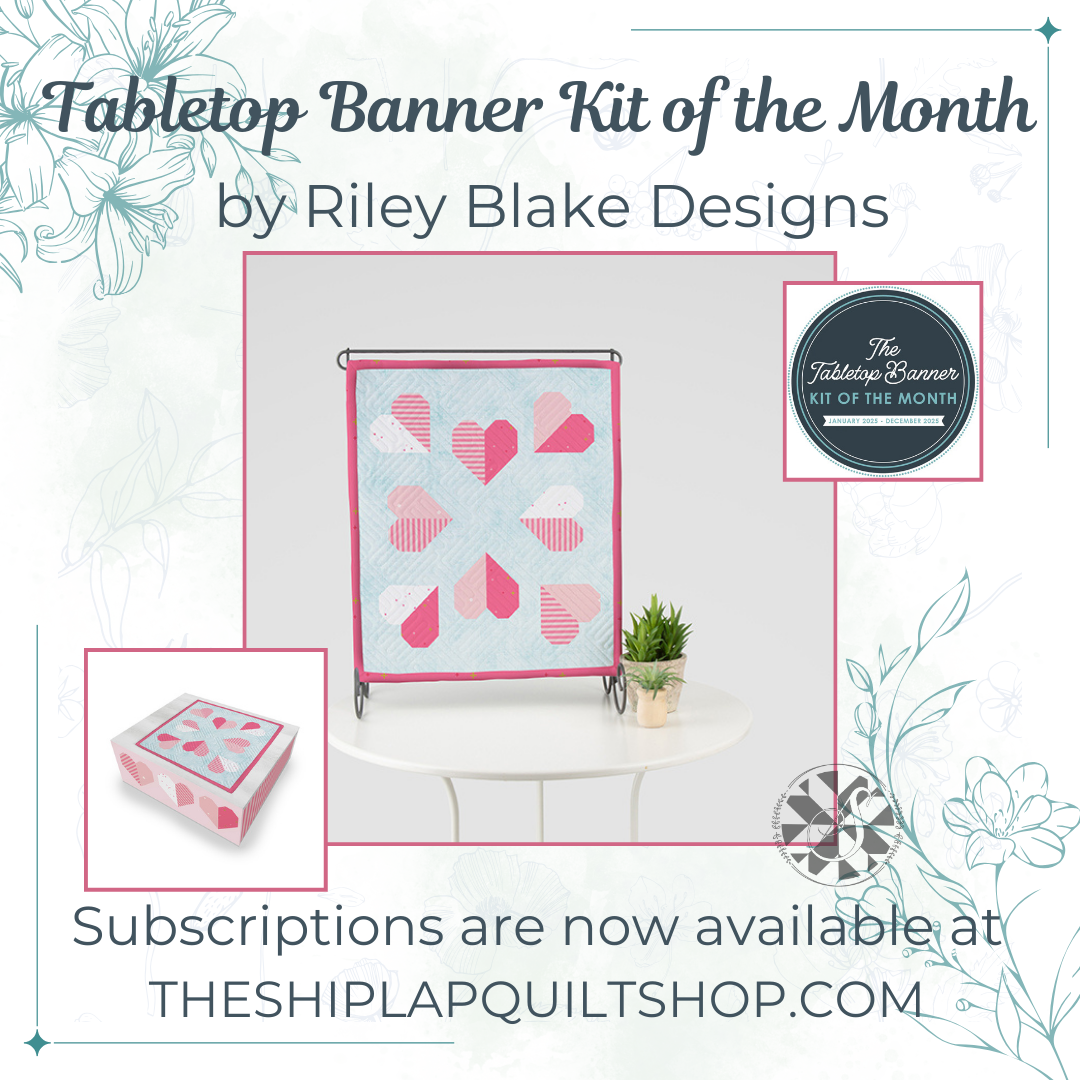 Add a little flair to your table this year! Introducing the 2025 Tabletop Banner Kit of the Month Club featuring your favorite Riley Blake designers. From January 2025 to December 2025, each month, you will receive one kit that includes the pattern and fabric for the 12” x 14” banner top and binding, all packaged in a 2.5" x 6.25" x 6.25" keepsake box.