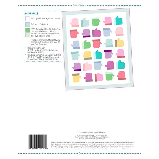 The Mitten Smitten Quilt pattern by Wendy Sheppard features pieced mittens. Finished size is 55" x 64".
