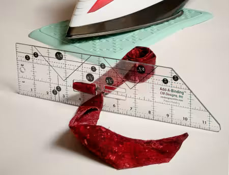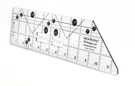 One tool for all your binding needs! Add-A-Binding allows you to cut 2 1/4” or 2 1/2” binding strips, trim at 45 degree angles, trim off tips, assist with folding binding in half, and trim off excess fabric ends for a perfect and beautiful binding every time.