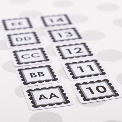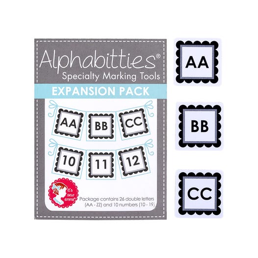 You can now go beyond A-Z with the Alphabitties Expansion Pack from It’s Sew Emma! When patterns call for pieces marked beyond A-Z or 1-9, these adorable squares are up for the task. Contains 26 double letters (AA - ZZ) and 10 numbers (10-19).