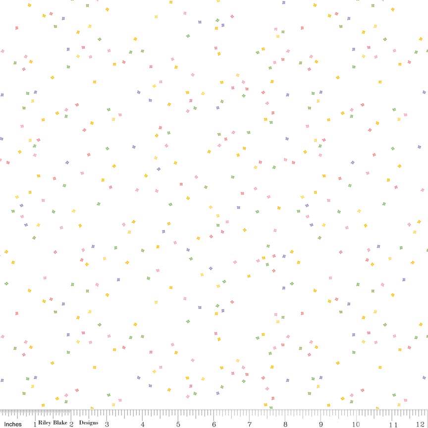This Riley Blake Designs Basic fabric by Christopher Thompson for Riley Blake Designs features tiny, colored confetti blossoms on a white background. It's perfect for quilting, apparel and home decor projects.