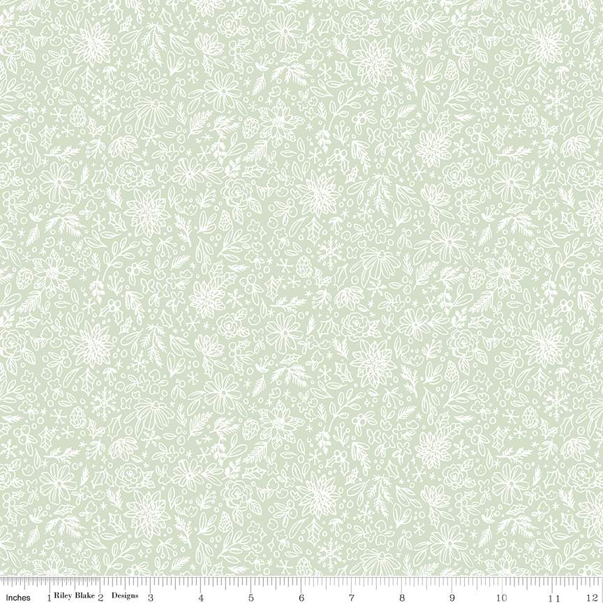 Charming Christmas by Kelsey Carlson for Riley Blake Designs is great for quilting, apparel and home decor. This print features outlined sprigs of flowers, leaves, pinecones, berries, and more.