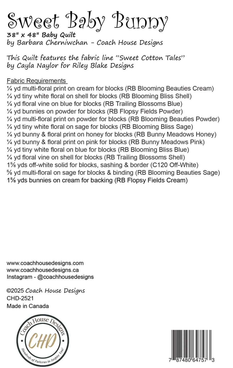 Coach House Designs Sweet Baby Bunny Quilt Pattern