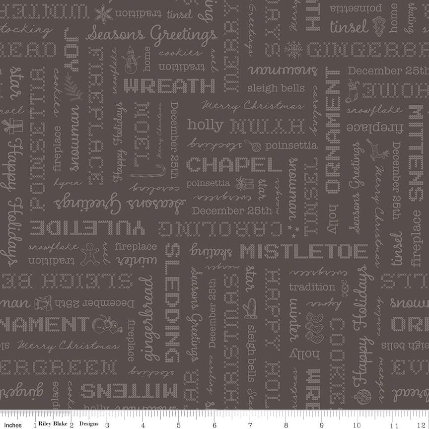 Home Town Holiday by Lori Holt of Bee in my Bonnet for Riley Blake Designs is great for quilting, apparel and home decor. This print features Christmas-themed text.