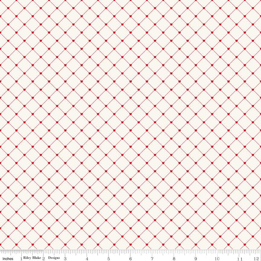 Letters to Cupid by My Mind's Eye for Riley Blake Designs is great for quilting, apparel and home decor. This print features a lattice with hearts at the intersections.