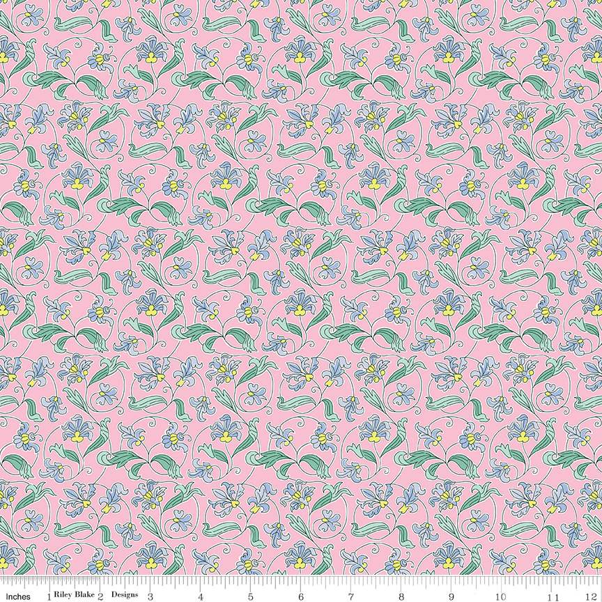 Liberty Fabrics are traditionally screen printed onto soft Lasenby cotton. This base is suited for craft projects, apparel, and classic patchwork quilting. The possibilities are as endless as your imagination. This elegant floral trail was based on a hand embroidered fabric length discovered within the Liberty archive, carefully translated into a contemporary print by tracing each intricate design detail with fine-liner pen. Its sinuous layout of decorated flowers, ornamental leaves and scrolling stems emulate the beautiful wrought ironwork often found on various garden gates around London.