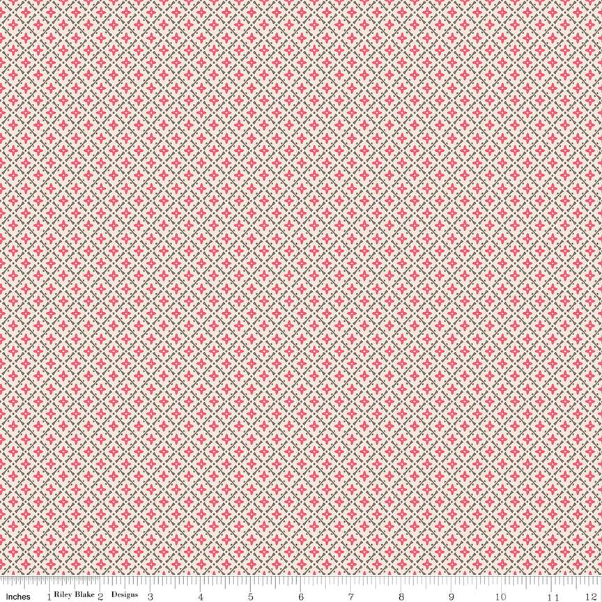 Piece & Plenty by Lori Holt of Bee in my Bonnet for Riley Blake Designs is great for quilting, apparel and home decor. This print features a lattice pattern with a blossom in the center.