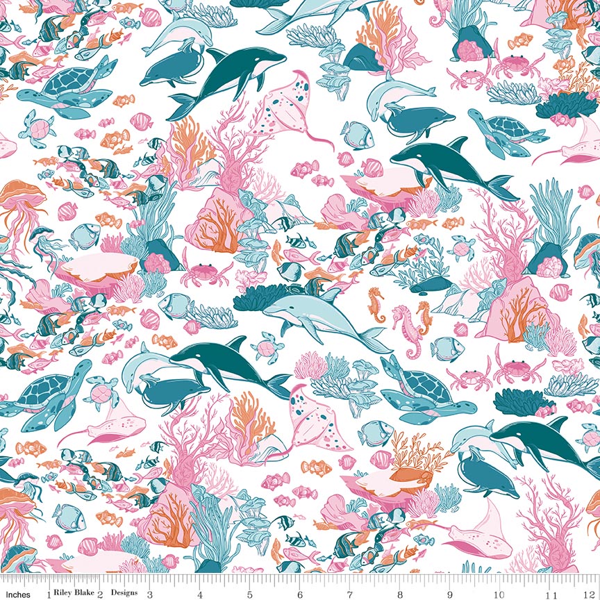 Reef by Corinne Wells for Riley Blake Designs is great for quilting, apparel and home decor. This print features assorted sea life.