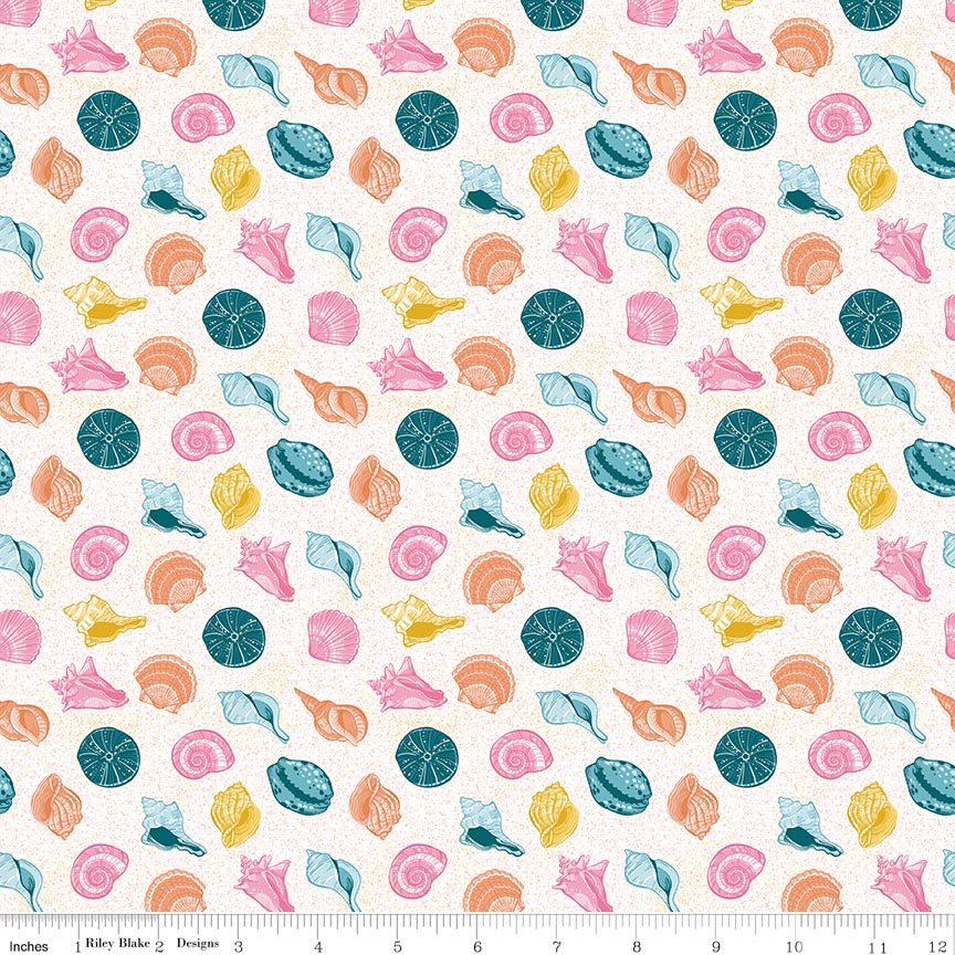 Reef by Corinne Wells for Riley Blake Designs is great for quilting, apparel and home decor. This print features seashells on a textured background.