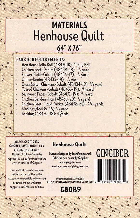 Add a touch of farmhouse charm to your next quilt with the Henhouse Quilt Pattern by Gingiber. This sweet and stylish pattern features bold hen blocks with modern, clean lines—perfect for showcasing your favorite prints or curated bundles.
