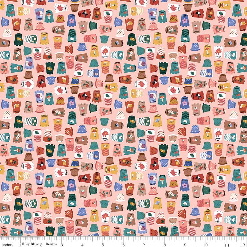 Thimbelina & the Sewing Fairies by Jennifer Long of Sew A Story for Riley Blake Designs is great for quilting, apparel and home decor. This print features assorted thimbles.
